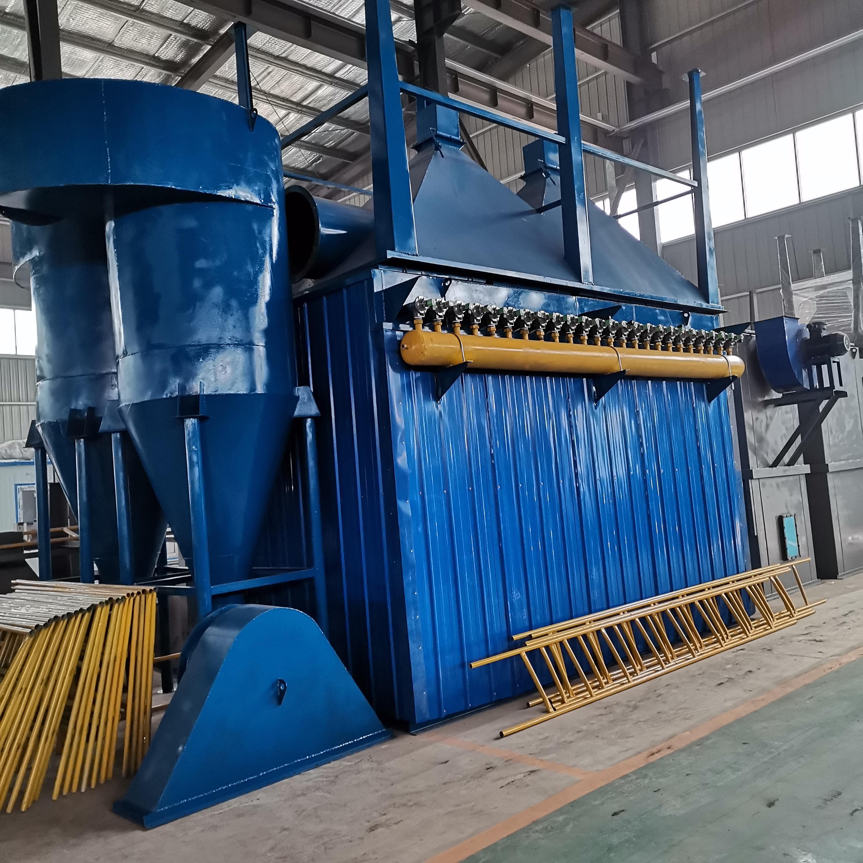 旋風式脈沖除塵器是旋風分離和除塵濾袋雙重過濾的組合式固氣分離裝置。它根據(jù)木材加工與人造板等企業(yè)中各類碎料的特性,綜合兩類分離性能的優(yōu)點,完善的將離心分離和機械過濾結合為一體,屬于國內(nèi)效果比較完善的一類的除塵設備。